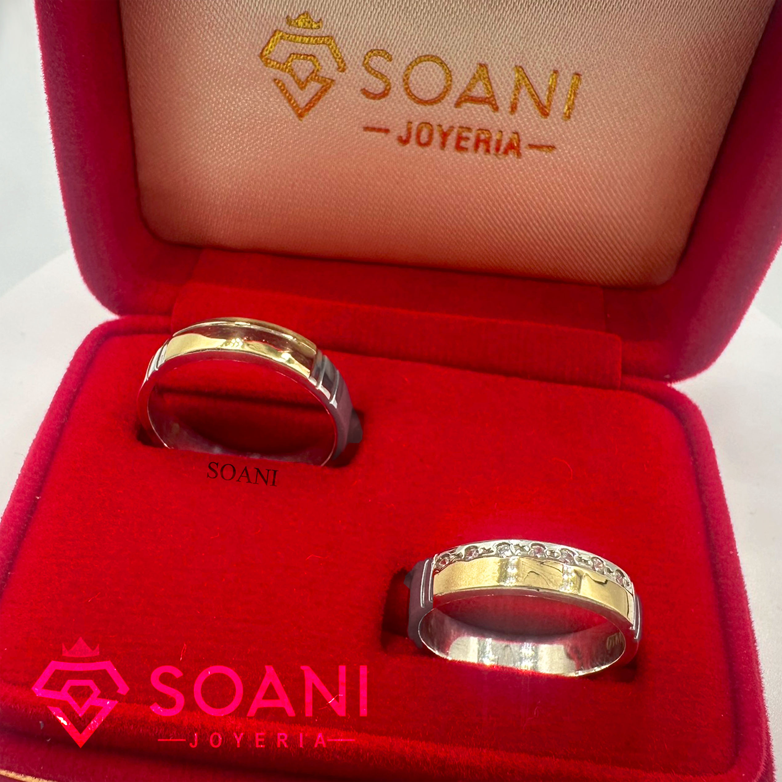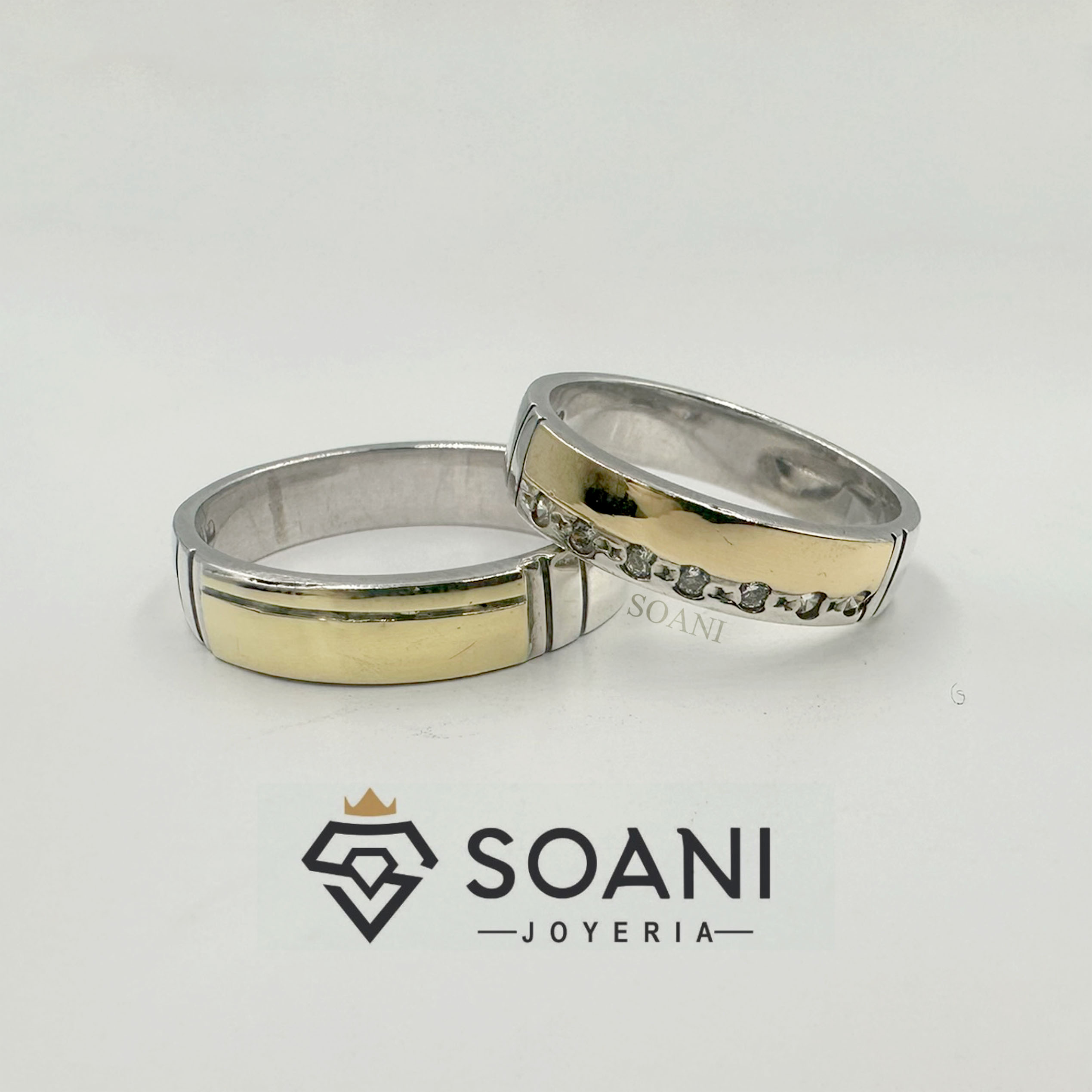 Alianzas de plata 950 con aplicación de lámina de oro 18 kilates, viene con: