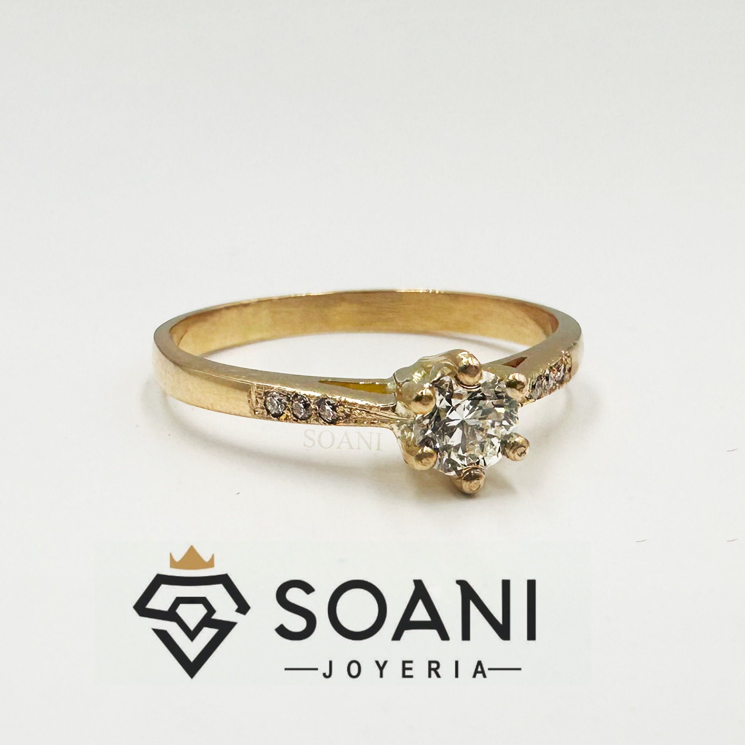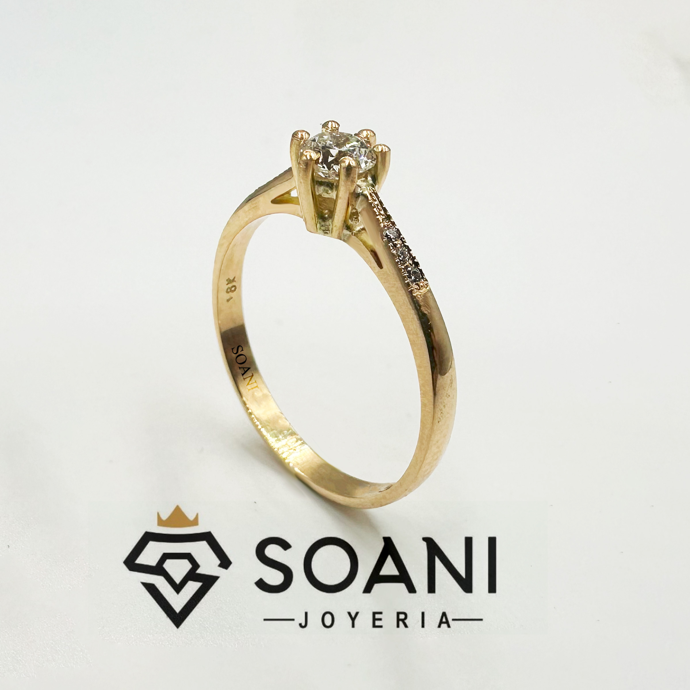 Sortija de Compromiso elaborada en oro 18k, con incrustaciones de piedras Moissanitas.