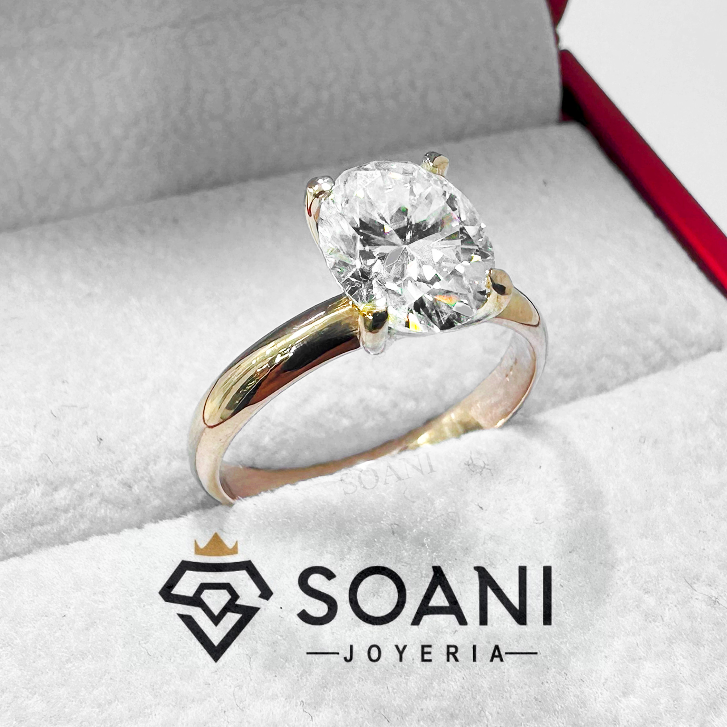 Sortija de Compromiso elaborada en oro 18k, con incrustación de piedras Swarovski.
